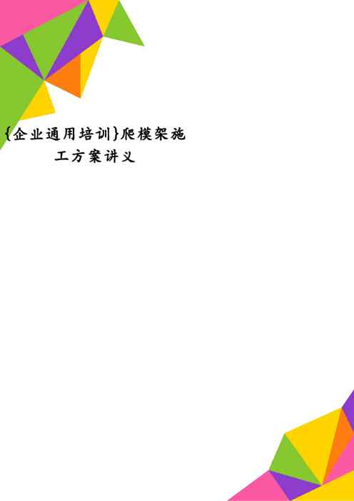 本站资深用户发布了最新的《{企业通用培训}爬模架施工方案讲义1609152344》文档,以下内容为预览,详细内容可下载阅读。 声明:本站所有文章,如无特殊说明或标注,均为本站原创发布。任何个人或组织,在未征得本站同意时,禁止复制、盗用、采集、发布本站内容到任何网站、书籍等各类媒体平台。如若本站内容侵犯了原著者的合法权益,可联系我们进行处理。