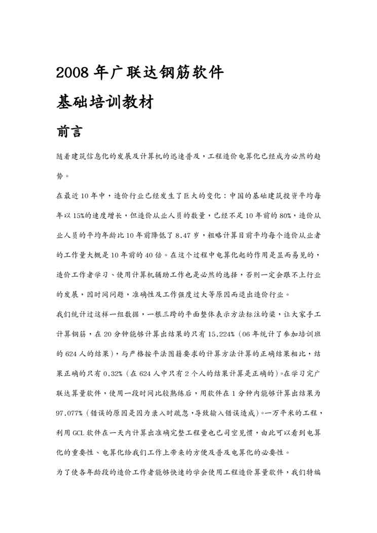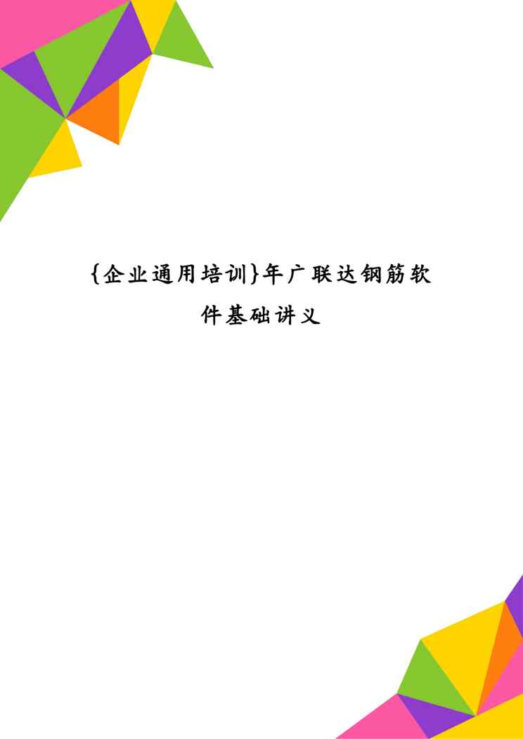 不久前,最新文档《{企业通用培训}年广联达钢筋软件基础讲义1609152369》全文正式在本站发布,感兴趣的用户可以下载阅读。 声明:本站所有文章,如无特殊说明或标注,均为本站原创发布。任何个人或组织,在未征得本站同意时,禁止复制、盗用、采集、发布本站内容到任何网站、书籍等各类媒体平台。如若本站内容侵犯了原著者的合法权益,可联系我们进行处理。