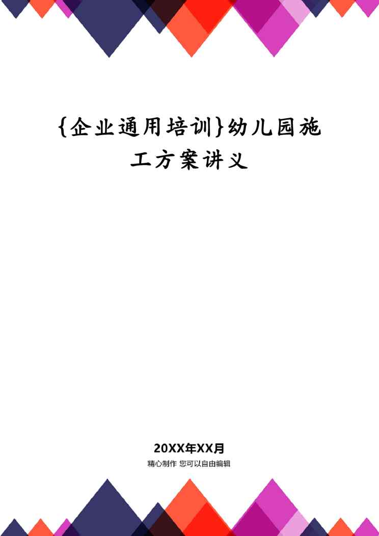 不久前,最新文档《{企业通用培训}幼儿园施工方案讲义》全文正式在本站发布,感兴趣的用户可以下载阅读。 声明:本站所有文章,如无特殊说明或标注,均为本站原创发布。任何个人或组织,在未征得本站同意时,禁止复制、盗用、采集、发布本站内容到任何网站、书籍等各类媒体平台。如若本站内容侵犯了原著者的合法权益,可联系我们进行处理。