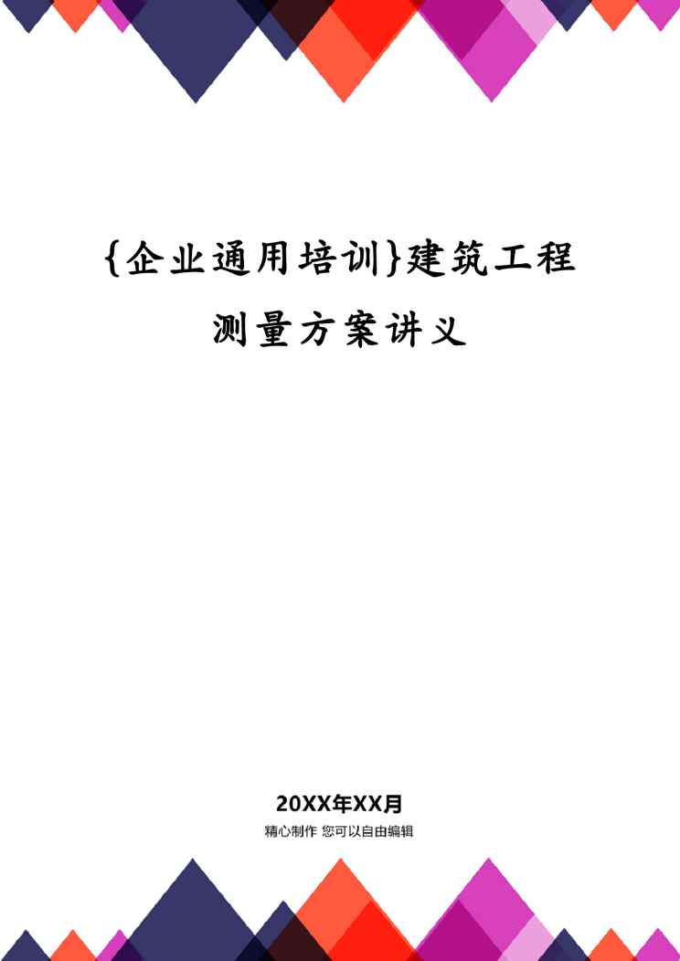 本站正式发布了《{企业通用培训}建筑工程测量方案讲义》文档,文档详细内容可下载阅读。 声明:本站所有文章,如无特殊说明或标注,均为本站原创发布。任何个人或组织,在未征得本站同意时,禁止复制、盗用、采集、发布本站内容到任何网站、书籍等各类媒体平台。如若本站内容侵犯了原著者的合法权益,可联系我们进行处理。