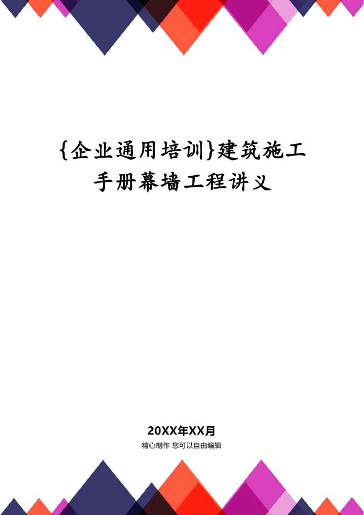 {企业通用培训}建筑施工手册幕墙工程讲义{企业通用培训}建筑施工手册幕墙工程讲义{企业通用培训}建筑施工手册幕墙工程讲义{企业通用培训}建筑施工手册幕墙工程讲义{企业通用培训}建筑施工手册幕墙工程讲义