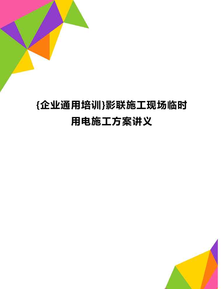 本站资深用户发布了最新的《{企业通用培训}影联施工现场临时用电施工方案讲义1609152390》文档,以下内容为预览,详细内容可下载阅读。 声明:本站所有文章,如无特殊说明或标注,均为本站原创发布。任何个人或组织,在未征得本站同意时,禁止复制、盗用、采集、发布本站内容到任何网站、书籍等各类媒体平台。如若本站内容侵犯了原著者的合法权益,可联系我们进行处理。
