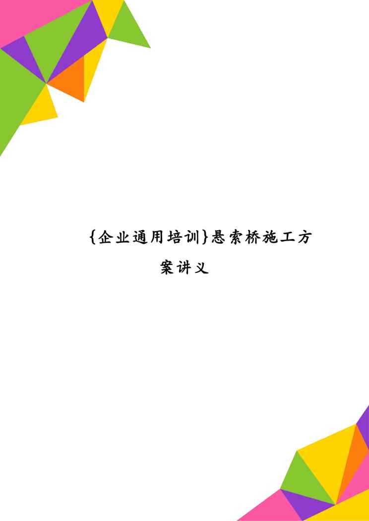 本站正式发布了《{企业通用培训}悬索桥施工方案讲义1609152390》文档,文档详细内容可下载阅读。 声明:本站所有文章,如无特殊说明或标注,均为本站原创发布。任何个人或组织,在未征得本站同意时,禁止复制、盗用、采集、发布本站内容到任何网站、书籍等各类媒体平台。如若本站内容侵犯了原著者的合法权益,可联系我们进行处理。