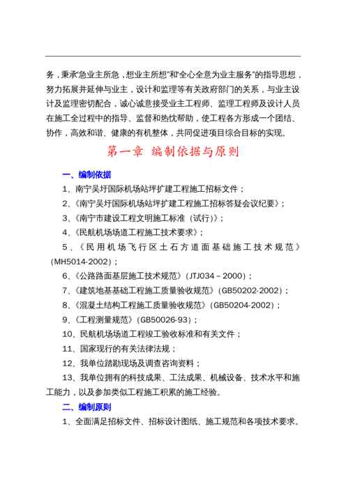 本站资深用户发布了最新的《{企业组织设计}南宁国际机场施工组织设计》文档,以下内容为预览,详细内容可下载阅读。 声明:本站所有文章,如无特殊说明或标注,均为本站原创发布。任何个人或组织,在未征得本站同意时,禁止复制、盗用、采集、发布本站内容到任何网站、书籍等各类媒体平台。如若本站内容侵犯了原著者的合法权益,可联系我们进行处理。