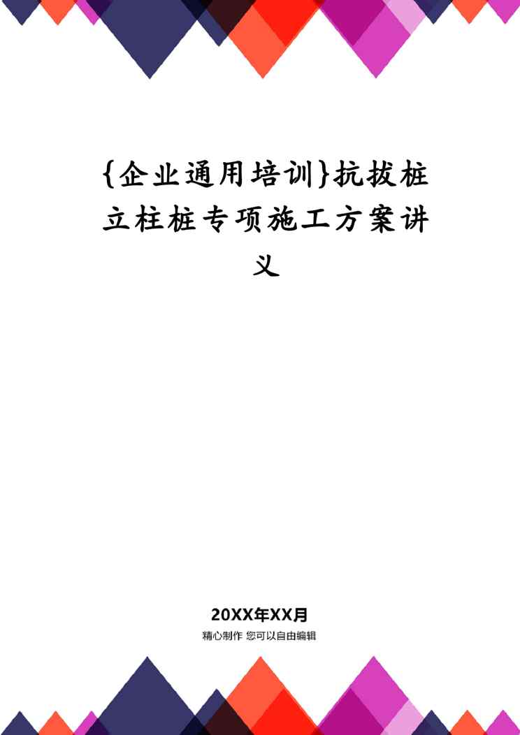 本站正式发布了《{企业通用培训}抗拔桩立柱桩专项施工方案讲义》文档,文档详细内容可下载阅读。