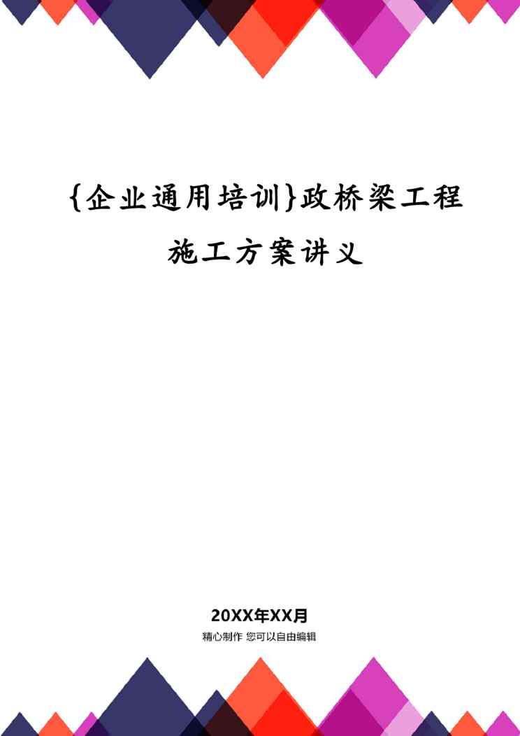 不久前,最新文档《{企业通用培训}政桥梁工程施工方案讲义》全文正式在本站发布,感兴趣的用户可以下载阅读。 声明:本站所有文章,如无特殊说明或标注,均为本站原创发布。任何个人或组织,在未征得本站同意时,禁止复制、盗用、采集、发布本站内容到任何网站、书籍等各类媒体平台。如若本站内容侵犯了原著者的合法权益,可联系我们进行处理。