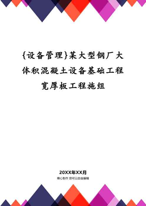 本站资深用户发布了最新的《{设备管理}某大型钢厂大体积混凝土设备基础工程宽厚板工程施组》文档,以下内容为预览,详细内容可下载阅读。 声明:本站所有文章,如无特殊说明或标注,均为本站原创发布。任何个人或组织,在未征得本站同意时,禁止复制、盗用、采集、发布本站内容到任何网站、书籍等各类媒体平台。如若本站内容侵犯了原著者的合法权益,可联系我们进行处理。