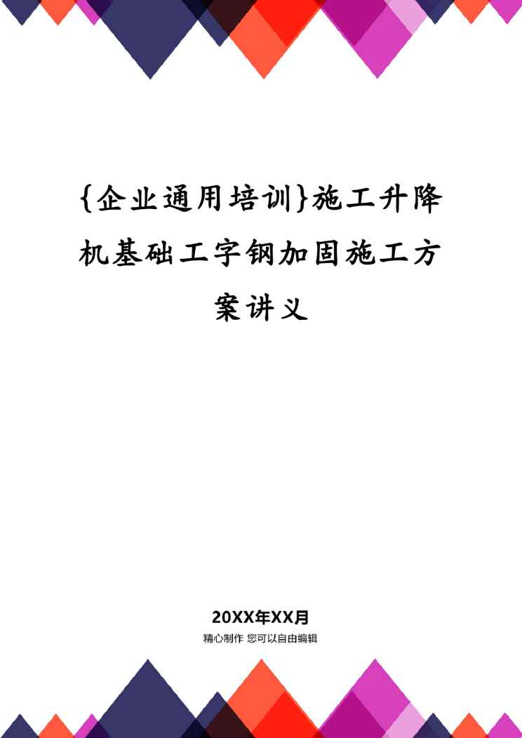 本站资深用户发布了最新的《{企业通用培训}施工升降机基础工字钢加固施工方案讲义》文档,以下内容为预览,详细内容可下载阅读。 声明:本站所有文章,如无特殊说明或标注,均为本站原创发布。任何个人或组织,在未征得本站同意时,禁止复制、盗用、采集、发布本站内容到任何网站、书籍等各类媒体平台。如若本站内容侵犯了原著者的合法权益,可联系我们进行处理。