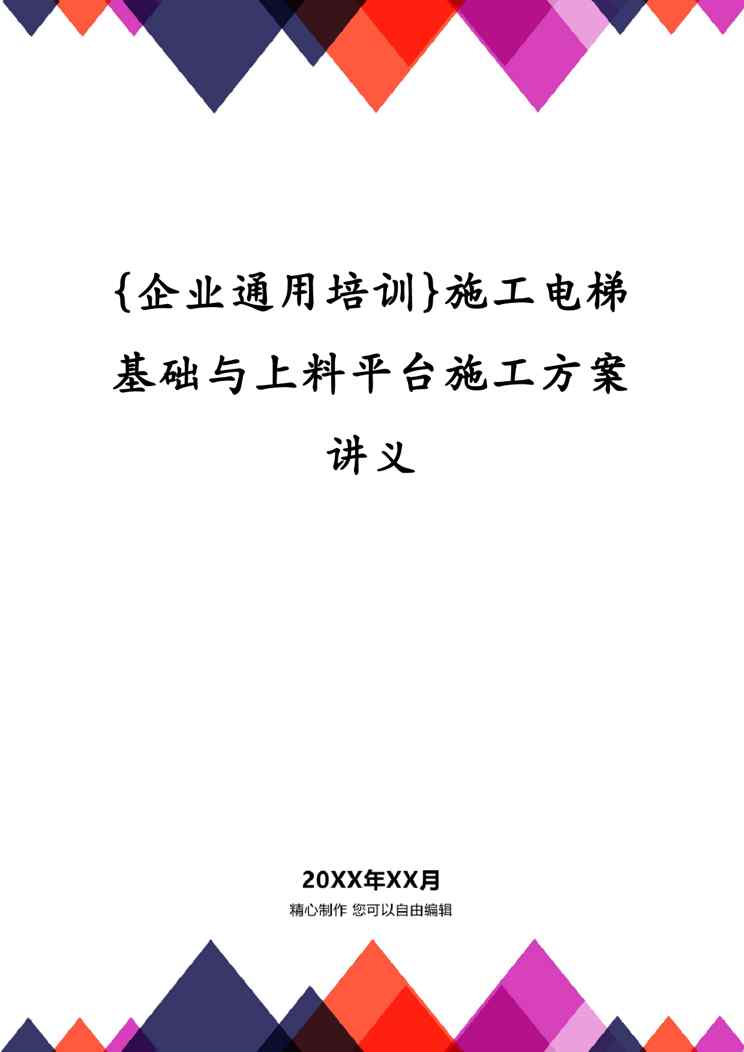 本站资深用户发布了最新的《{企业通用培训}施工电梯基础与上料平台施工方案讲义》文档,以下内容为预览,详细内容可下载阅读。 声明:本站所有文章,如无特殊说明或标注,均为本站原创发布。任何个人或组织,在未征得本站同意时,禁止复制、盗用、采集、发布本站内容到任何网站、书籍等各类媒体平台。如若本站内容侵犯了原著者的合法权益,可联系我们进行处理。
