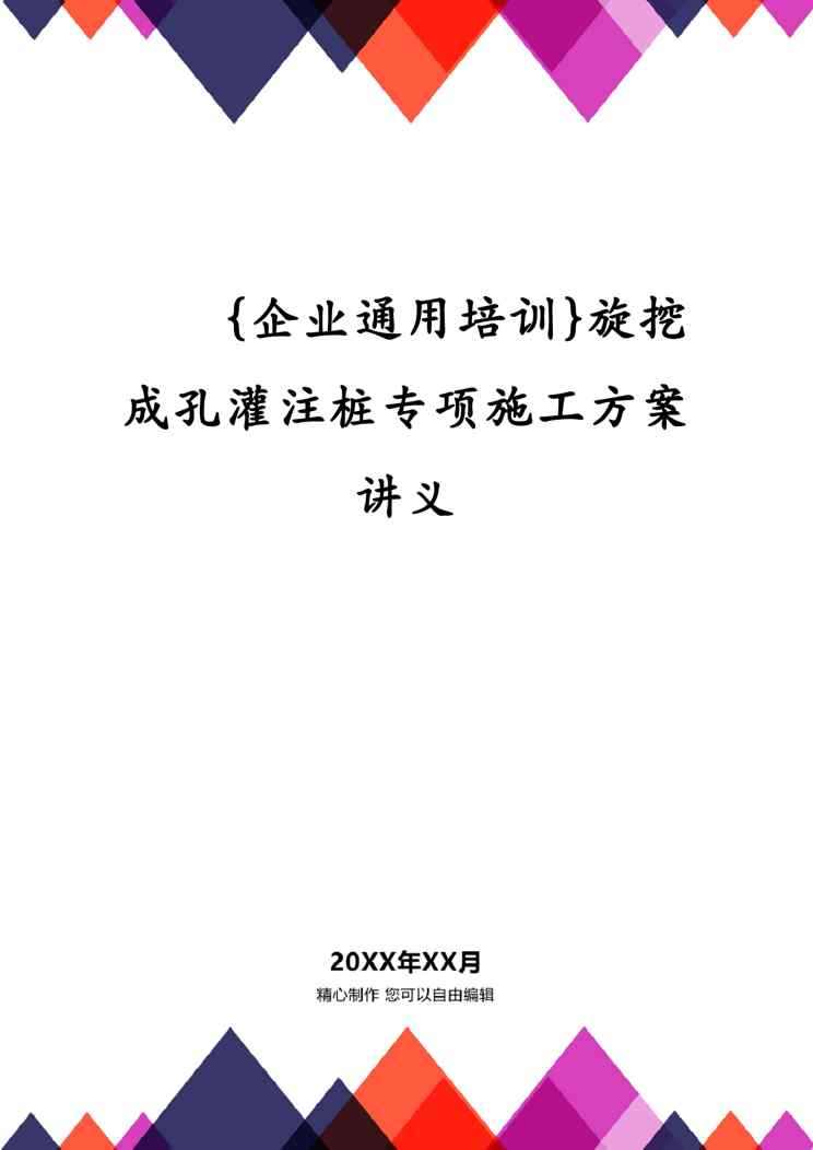 本站正式发布了《{企业通用培训}旋挖成孔灌注桩专项施工方案讲义》文档,文档详细内容可下载阅读。 声明:本站所有文章,如无特殊说明或标注,均为本站原创发布。任何个人或组织,在未征得本站同意时,禁止复制、盗用、采集、发布本站内容到任何网站、书籍等各类媒体平台。如若本站内容侵犯了原著者的合法权益,可联系我们进行处理。