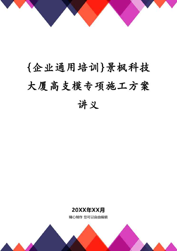不久前,最新文档《{企业通用培训}景枫科技大厦高支模专项施工方案讲义》全文正式在本站发布,感兴趣的用户可以下载阅读。 声明:本站所有文章,如无特殊说明或标注,均为本站原创发布。任何个人或组织,在未征得本站同意时,禁止复制、盗用、采集、发布本站内容到任何网站、书籍等各类媒体平台。如若本站内容侵犯了原著者的合法权益,可联系我们进行处理。