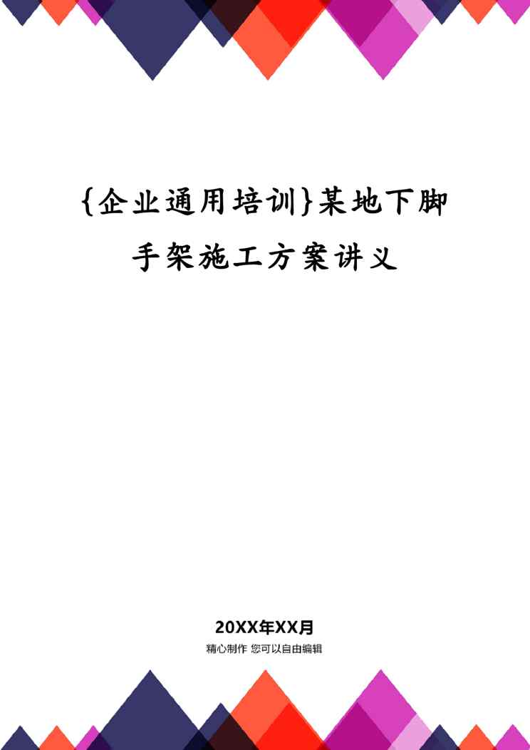 不久前,最新文档《{企业通用培训}某地下脚手架施工方案讲义》全文正式在本站发布,感兴趣的用户可以下载阅读。 声明:本站所有文章,如无特殊说明或标注,均为本站原创发布。任何个人或组织,在未征得本站同意时,禁止复制、盗用、采集、发布本站内容到任何网站、书籍等各类媒体平台。如若本站内容侵犯了原著者的合法权益,可联系我们进行处理。