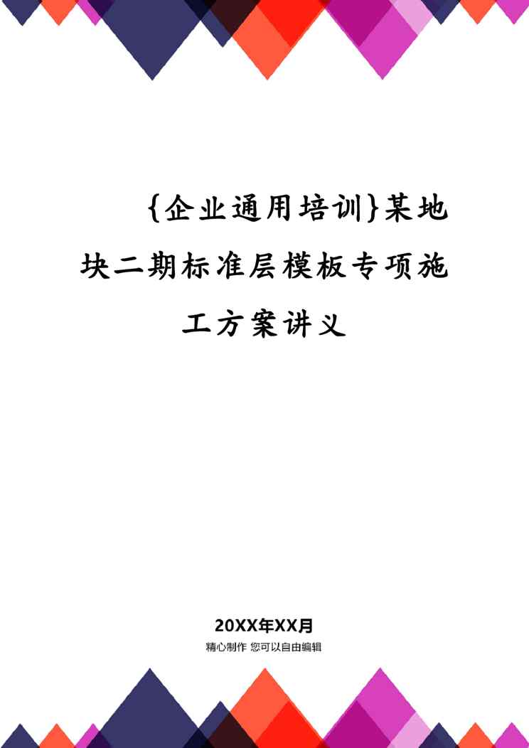 不久前,最新文档《{企业通用培训}某地块二期标准层模板专项施工方案讲义》全文正式在本站发布,感兴趣的用户可以下载阅读。 声明:本站所有文章,如无特殊说明或标注,均为本站原创发布。任何个人或组织,在未征得本站同意时,禁止复制、盗用、采集、发布本站内容到任何网站、书籍等各类媒体平台。如若本站内容侵犯了原著者的合法权益,可联系我们进行处理。