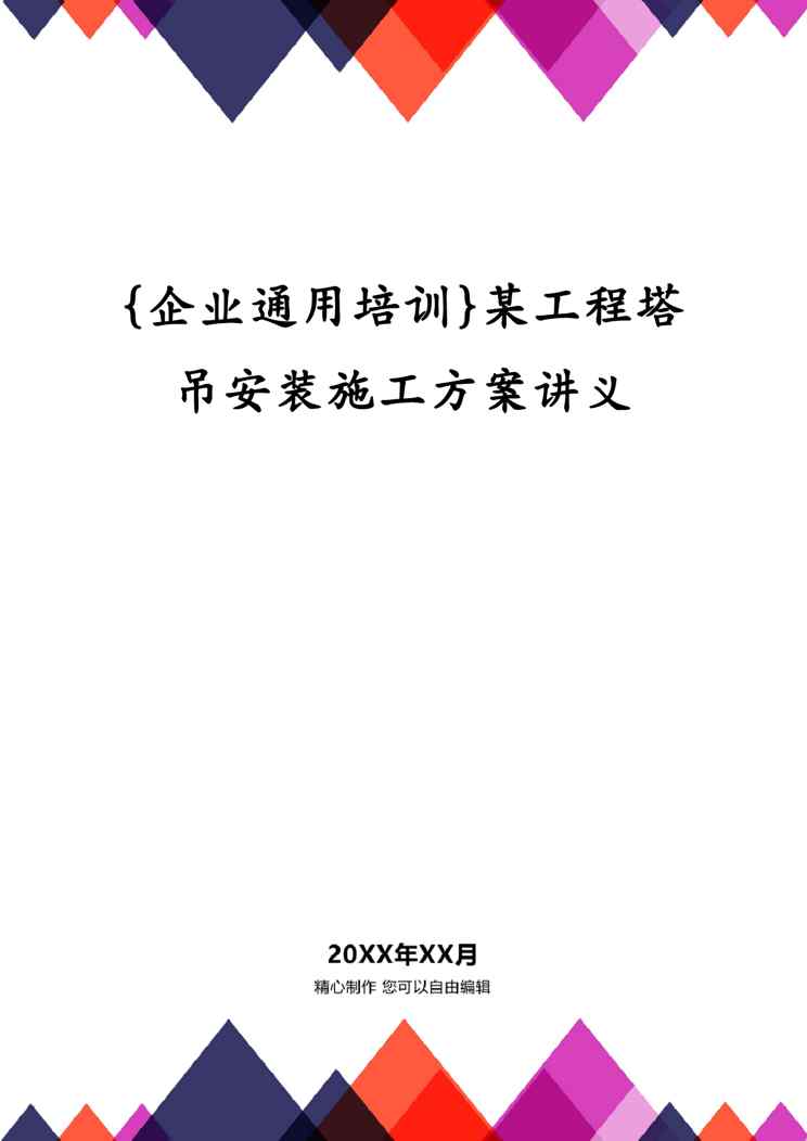 不久前,最新文档《{企业通用培训}某工程塔吊安装施工方案讲义》全文正式在本站发布,感兴趣的用户可以下载阅读。 声明:本站所有文章,如无特殊说明或标注,均为本站原创发布。任何个人或组织,在未征得本站同意时,禁止复制、盗用、采集、发布本站内容到任何网站、书籍等各类媒体平台。如若本站内容侵犯了原著者的合法权益,可联系我们进行处理。