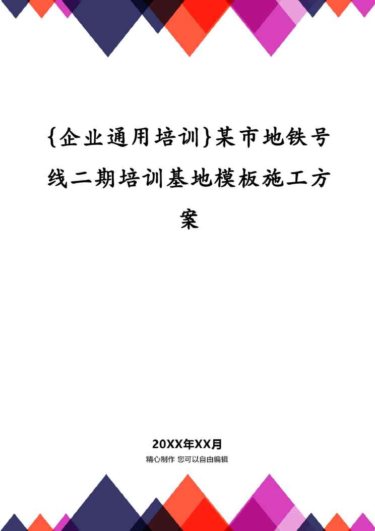 本站资深用户发布了最新的《{企业通用培训}某市地铁号线二期培训基地模板施工方案》文档,以下内容为预览,详细内容可下载阅读。 声明:本站所有文章,如无特殊说明或标注,均为本站原创发布。任何个人或组织,在未征得本站同意时,禁止复制、盗用、采集、发布本站内容到任何网站、书籍等各类媒体平台。如若本站内容侵犯了原著者的合法权益,可联系我们进行处理。