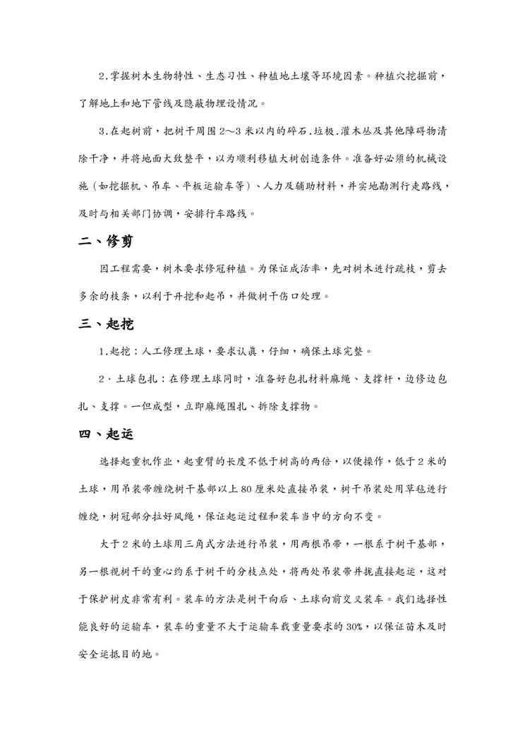 不久前,最新文档《{企业通用培训}树木移植施工方案讲义》全文正式在本站发布,感兴趣的用户可以下载阅读。 声明:本站所有文章,如无特殊说明或标注,均为本站原创发布。任何个人或组织,在未征得本站同意时,禁止复制、盗用、采集、发布本站内容到任何网站、书籍等各类媒体平台。如若本站内容侵犯了原著者的合法权益,可联系我们进行处理。