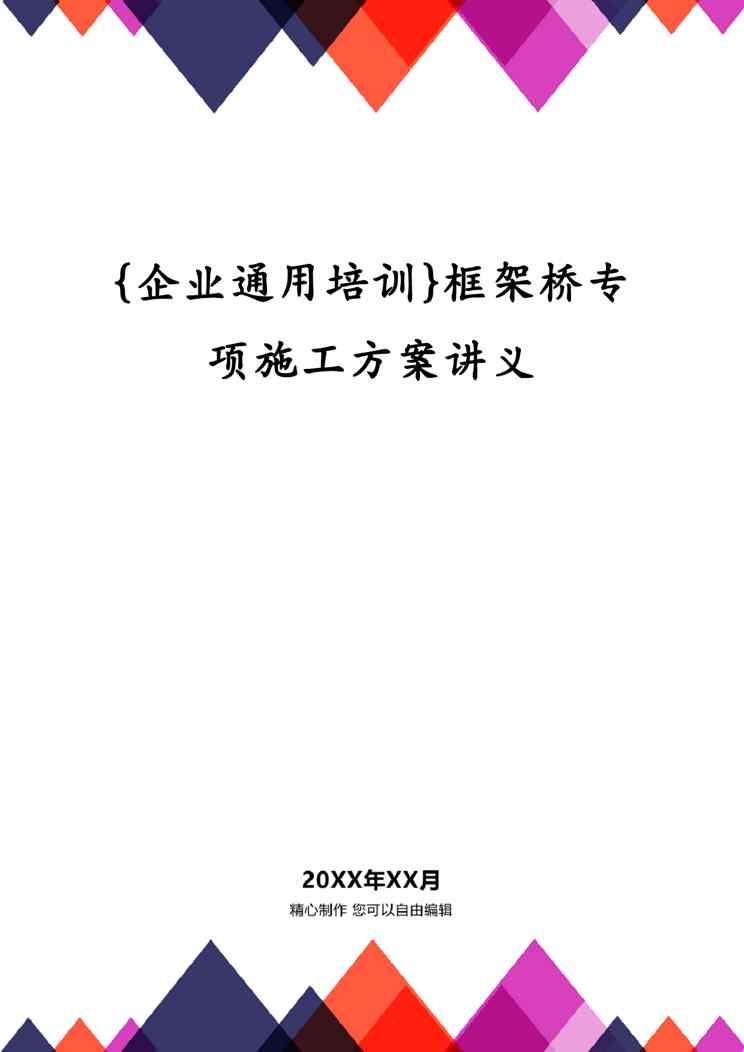 不久前,最新文档《{企业通用培训}框架桥专项施工方案讲义》全文正式在本站发布,感兴趣的用户可以下载阅读。 声明:本站所有文章,如无特殊说明或标注,均为本站原创发布。任何个人或组织,在未征得本站同意时,禁止复制、盗用、采集、发布本站内容到任何网站、书籍等各类媒体平台。如若本站内容侵犯了原著者的合法权益,可联系我们进行处理。