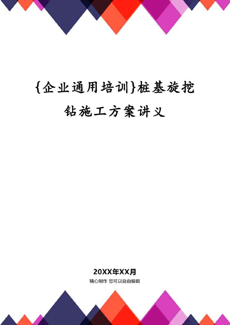 本站资深用户发布了最新的《{企业通用培训}桩基旋挖钻施工方案讲义》文档,以下内容为预览,详细内容可下载阅读。 声明:本站所有文章,如无特殊说明或标注,均为本站原创发布。任何个人或组织,在未征得本站同意时,禁止复制、盗用、采集、发布本站内容到任何网站、书籍等各类媒体平台。如若本站内容侵犯了原著者的合法权益,可联系我们进行处理。