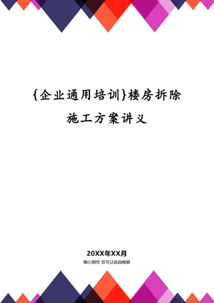 本站正式发布了《{企业通用培训}楼房拆除施工方案讲义》文档,文档详细内容可下载阅读。 声明:本站所有文章,如无特殊说明或标注,均为本站原创发布。任何个人或组织,在未征得本站同意时,禁止复制、盗用、采集、发布本站内容到任何网站、书籍等各类媒体平台。如若本站内容侵犯了原著者的合法权益,可联系我们进行处理。