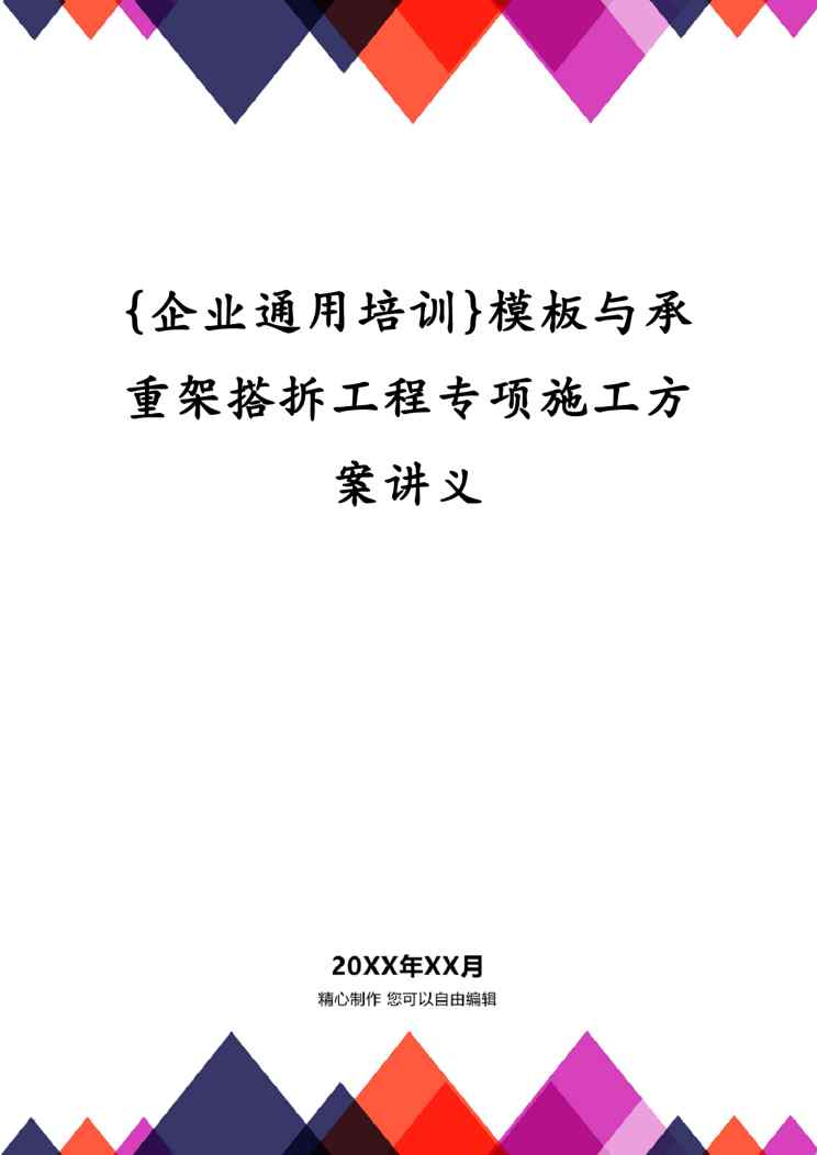 不久前,最新文档《{企业通用培训}模板与承重架搭拆工程专项施工方案讲义》全文正式在本站发布,感兴趣的用户可以下载阅读。 声明:本站所有文章,如无特殊说明或标注,均为本站原创发布。任何个人或组织,在未征得本站同意时,禁止复制、盗用、采集、发布本站内容到任何网站、书籍等各类媒体平台。如若本站内容侵犯了原著者的合法权益,可联系我们进行处理。