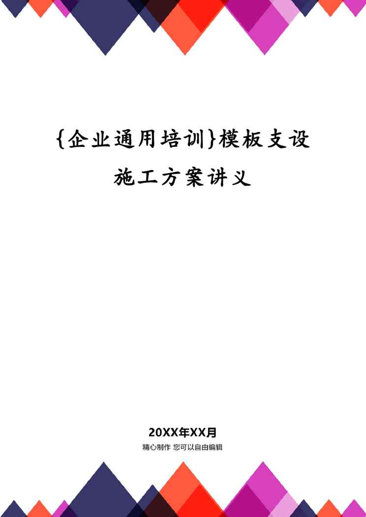 本站正式发布了《{企业通用培训}模板支设施工方案讲义》文档,文档详细内容可下载阅读。 声明:本站所有文章,如无特殊说明或标注,均为本站原创发布。任何个人或组织,在未征得本站同意时,禁止复制、盗用、采集、发布本站内容到任何网站、书籍等各类媒体平台。如若本站内容侵犯了原著者的合法权益,可联系我们进行处理。