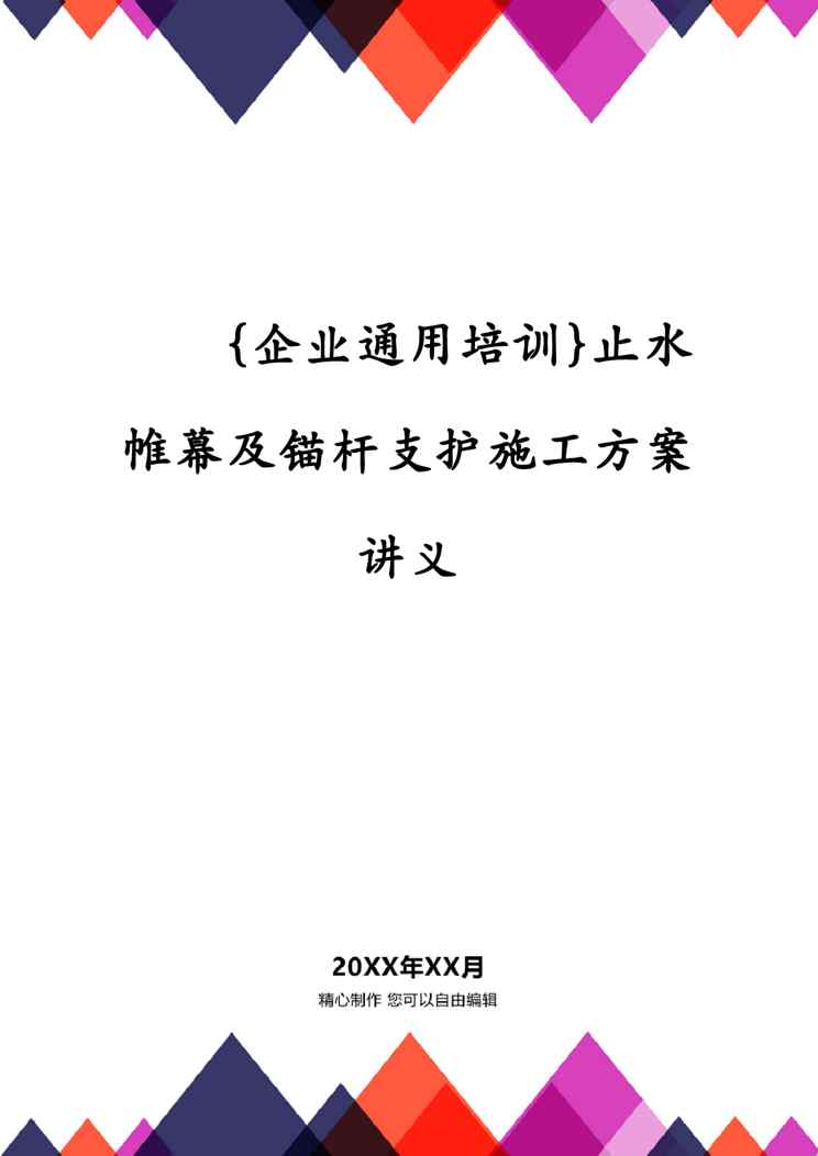 本站正式发布了《{企业通用培训}止水帷幕及锚杆支护施工方案讲义》文档,文档详细内容可下载阅读。 声明:本站所有文章,如无特殊说明或标注,均为本站原创发布。任何个人或组织,在未征得本站同意时,禁止复制、盗用、采集、发布本站内容到任何网站、书籍等各类媒体平台。如若本站内容侵犯了原著者的合法权益,可联系我们进行处理。