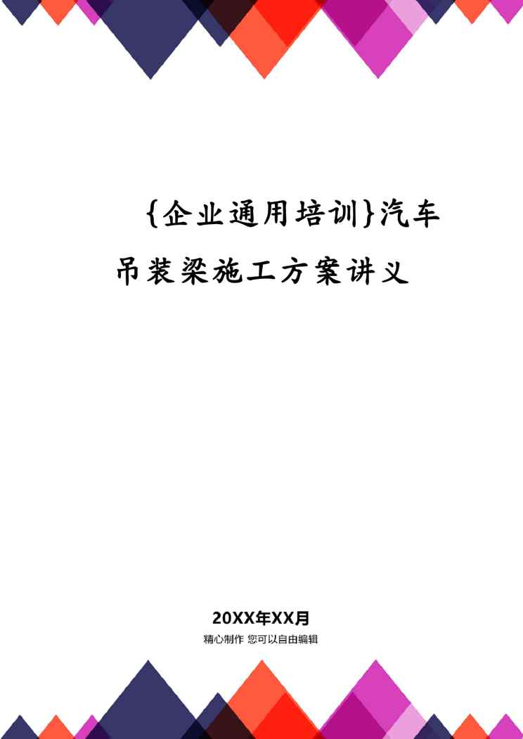 本站资深用户发布了最新的《{企业通用培训}汽车吊装梁施工方案讲义》文档,以下内容为预览,详细内容可下载阅读。 声明:本站所有文章,如无特殊说明或标注,均为本站原创发布。任何个人或组织,在未征得本站同意时,禁止复制、盗用、采集、发布本站内容到任何网站、书籍等各类媒体平台。如若本站内容侵犯了原著者的合法权益,可联系我们进行处理。
