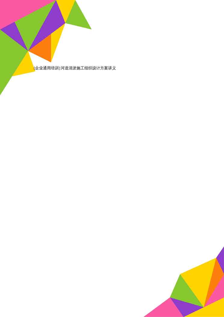 本站资深用户发布了最新的《{企业通用培训}河道清淤施工组织设计方案讲义1609152350》文档,以下内容为预览,详细内容可下载阅读。 声明:本站所有文章,如无特殊说明或标注,均为本站原创发布。任何个人或组织,在未征得本站同意时,禁止复制、盗用、采集、发布本站内容到任何网站、书籍等各类媒体平台。如若本站内容侵犯了原著者的合法权益,可联系我们进行处理。
