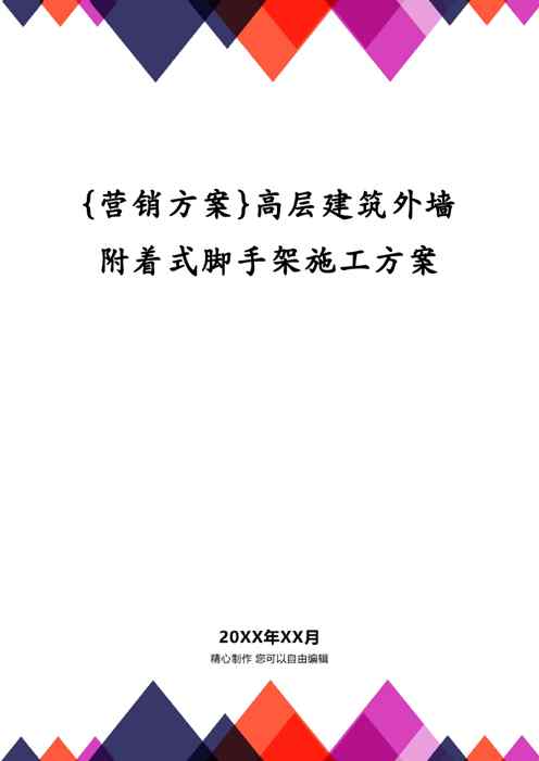 本站资深用户发布了最新的《{营销方案}高层建筑外墙附着式脚手架施工方案》文档,以下内容为预览,详细内容可下载阅读。 声明:本站所有文章,如无特殊说明或标注,均为本站原创发布。任何个人或组织,在未征得本站同意时,禁止复制、盗用、采集、发布本站内容到任何网站、书籍等各类媒体平台。如若本站内容侵犯了原著者的合法权益,可联系我们进行处理。
