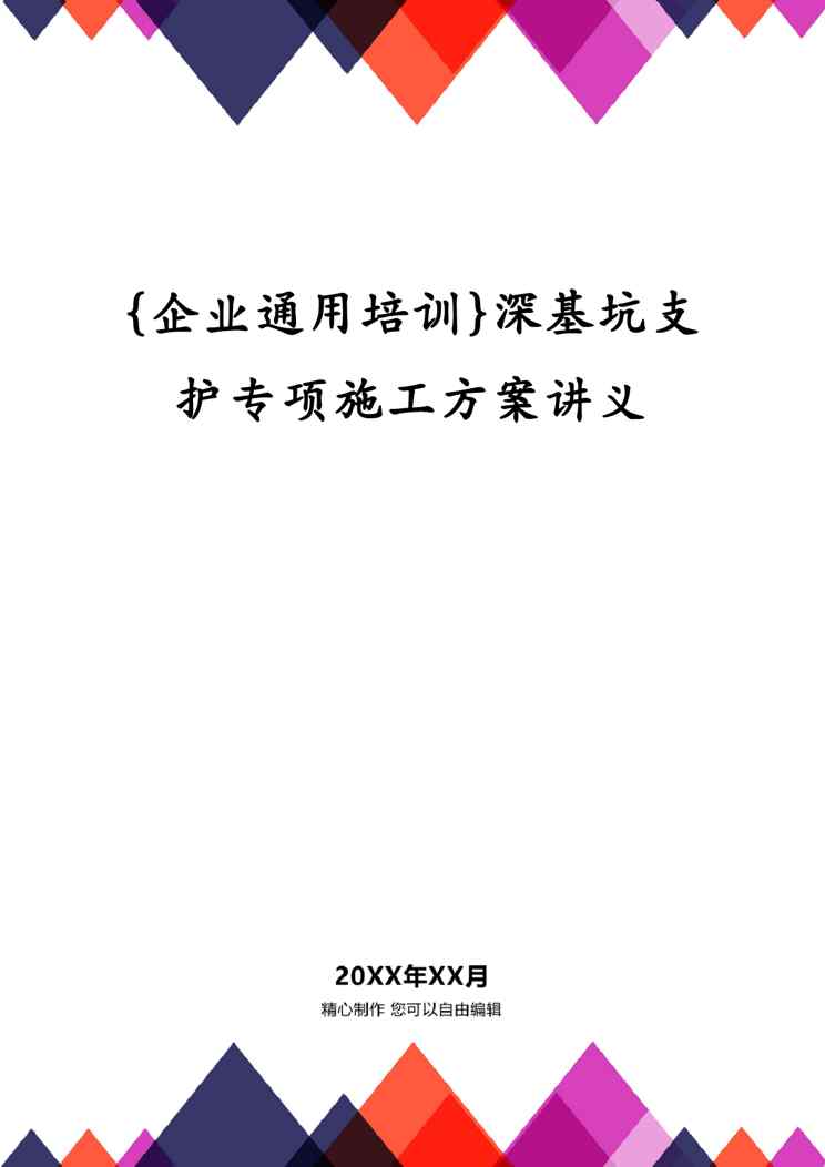 本站正式发布了《{企业通用培训}深基坑支护专项施工方案讲义》文档,文档详细内容可下载阅读。 声明:本站所有文章,如无特殊说明或标注,均为本站原创发布。任何个人或组织,在未征得本站同意时,禁止复制、盗用、采集、发布本站内容到任何网站、书籍等各类媒体平台。如若本站内容侵犯了原著者的合法权益,可联系我们进行处理。