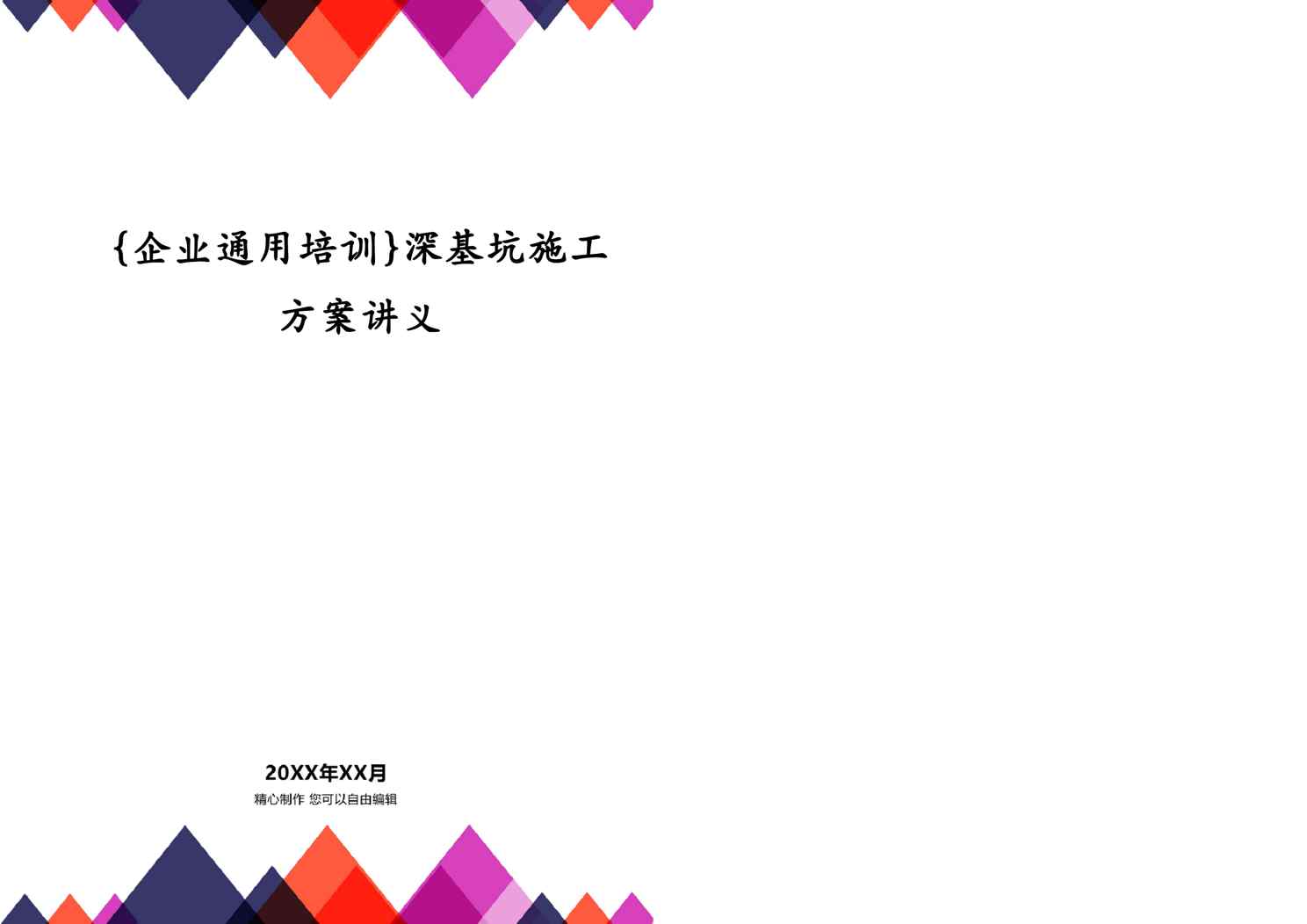 本站资深用户发布了最新的《{企业通用培训}深基坑施工方案讲义》文档,以下内容为预览,详细内容可下载阅读。