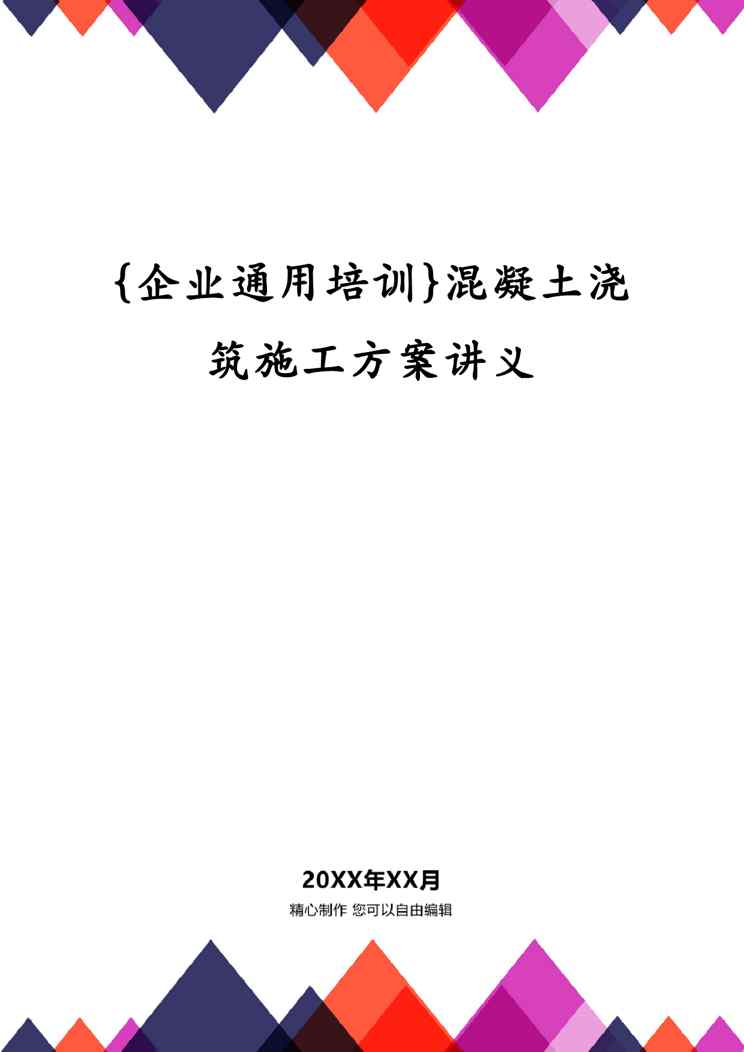 本站资深用户发布了最新的《{企业通用培训}混凝土浇筑施工方案讲义》文档,以下内容为预览,详细内容可下载阅读。 声明:本站所有文章,如无特殊说明或标注,均为本站原创发布。任何个人或组织,在未征得本站同意时,禁止复制、盗用、采集、发布本站内容到任何网站、书籍等各类媒体平台。如若本站内容侵犯了原著者的合法权益,可联系我们进行处理。