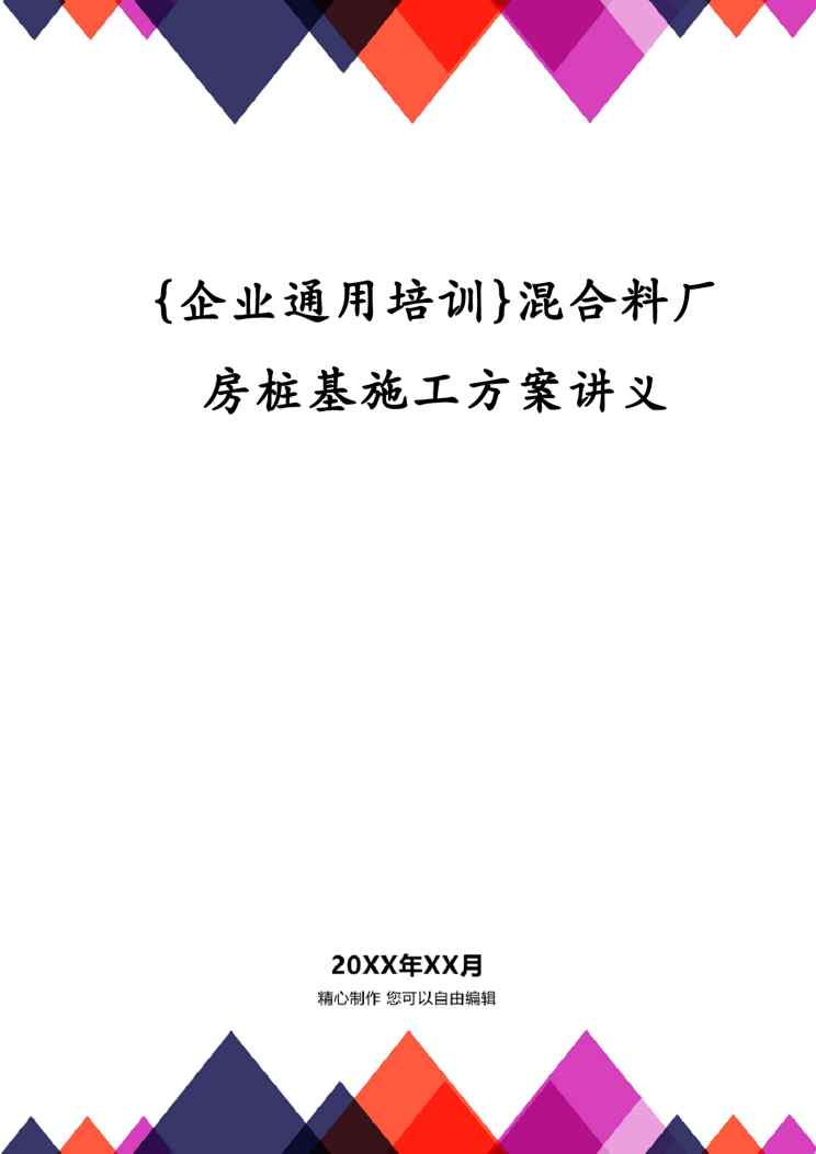本站资深用户发布了最新的《{企业通用培训}混合料厂房桩基施工方案讲义》文档,以下内容为预览,详细内容可下载阅读。 声明:本站所有文章,如无特殊说明或标注,均为本站原创发布。任何个人或组织,在未征得本站同意时,禁止复制、盗用、采集、发布本站内容到任何网站、书籍等各类媒体平台。如若本站内容侵犯了原著者的合法权益,可联系我们进行处理。