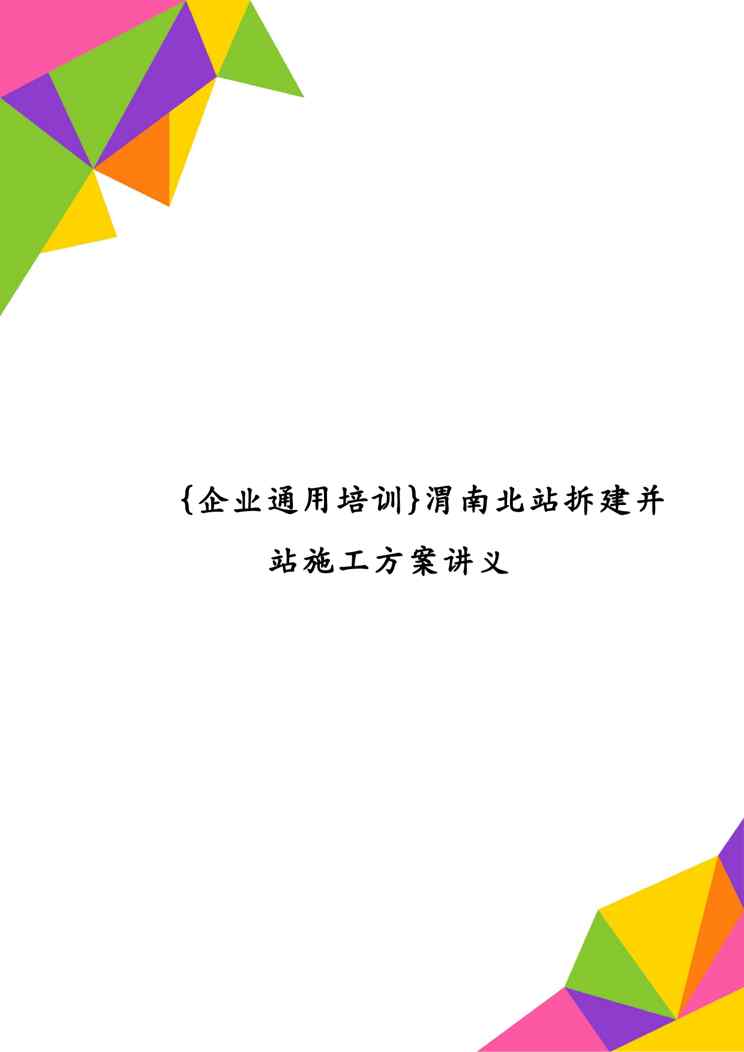 本站正式发布了《{企业通用培训}渭南北站拆建并站施工方案讲义1609152347》文档,文档详细内容可下载阅读。 声明:本站所有文章,如无特殊说明或标注,均为本站原创发布。任何个人或组织,在未征得本站同意时,禁止复制、盗用、采集、发布本站内容到任何网站、书籍等各类媒体平台。如若本站内容侵犯了原著者的合法权益,可联系我们进行处理。