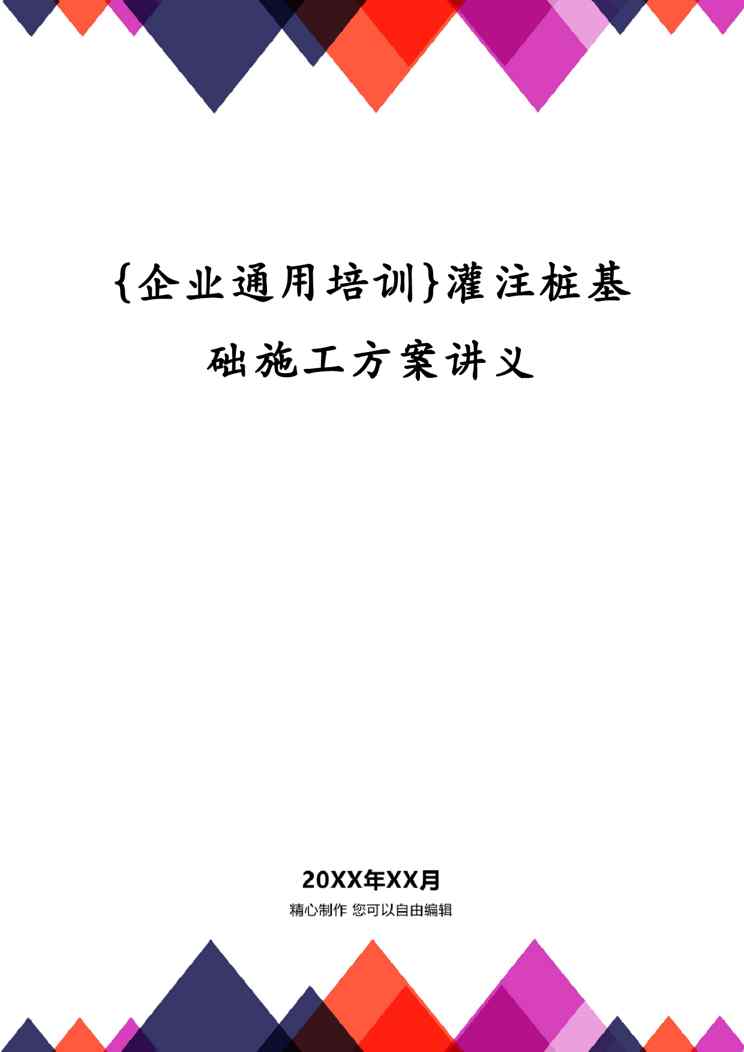 本站资深用户发布了最新的《{企业通用培训}灌注桩基础施工方案讲义》文档,以下内容为预览,详细内容可下载阅读。 声明:本站所有文章,如无特殊说明或标注,均为本站原创发布。任何个人或组织,在未征得本站同意时,禁止复制、盗用、采集、发布本站内容到任何网站、书籍等各类媒体平台。如若本站内容侵犯了原著者的合法权益,可联系我们进行处理。