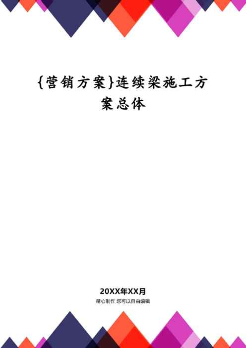 本站正式发布了《{营销方案}连续梁施工方案总体1609150219》文档,文档详细内容可下载阅读。 声明:本站所有文章,如无特殊说明或标注,均为本站原创发布。任何个人或组织,在未征得本站同意时,禁止复制、盗用、采集、发布本站内容到任何网站、书籍等各类媒体平台。如若本站内容侵犯了原著者的合法权益,可联系我们进行处理。