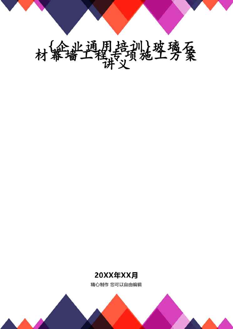 不久前,最新文档《{企业通用培训}玻璃石材幕墙工程专项施工方案讲义》全文正式在本站发布,感兴趣的用户可以下载阅读。 声明:本站所有文章,如无特殊说明或标注,均为本站原创发布。任何个人或组织,在未征得本站同意时,禁止复制、盗用、采集、发布本站内容到任何网站、书籍等各类媒体平台。如若本站内容侵犯了原著者的合法权益,可联系我们进行处理。