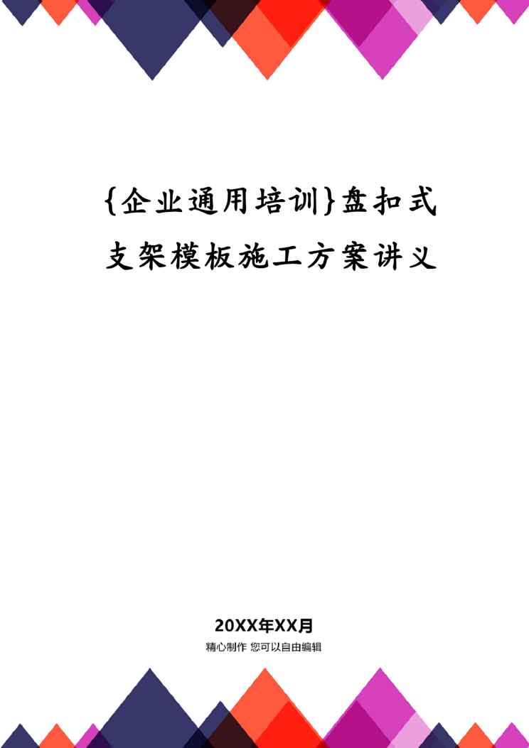 不久前,最新文档《{企业通用培训}盘扣式支架模板施工方案讲义》全文正式在本站发布,感兴趣的用户可以下载阅读。 声明:本站所有文章,如无特殊说明或标注,均为本站原创发布。任何个人或组织,在未征得本站同意时,禁止复制、盗用、采集、发布本站内容到任何网站、书籍等各类媒体平台。如若本站内容侵犯了原著者的合法权益,可联系我们进行处理。