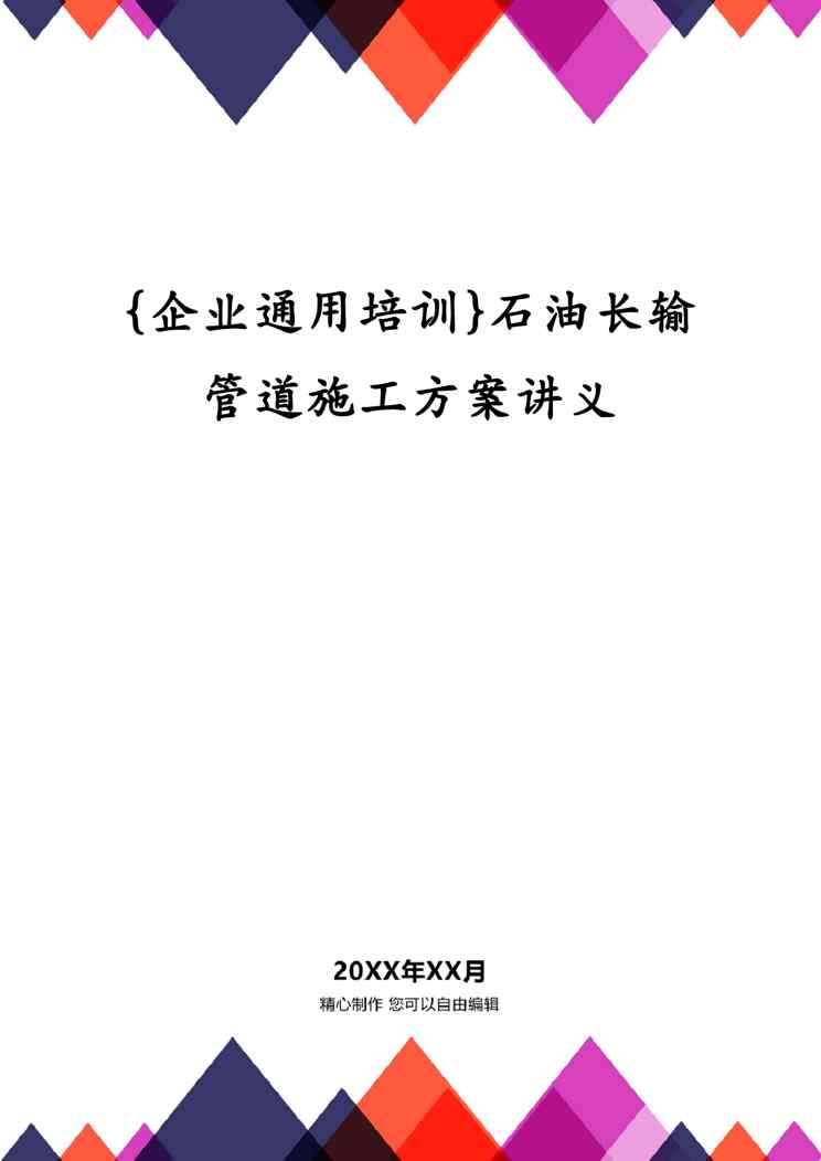 本站资深用户发布了最新的《{企业通用培训}石油长输管道施工方案讲义》文档,以下内容为预览,详细内容可下载阅读。 声明:本站所有文章,如无特殊说明或标注,均为本站原创发布。任何个人或组织,在未征得本站同意时,禁止复制、盗用、采集、发布本站内容到任何网站、书籍等各类媒体平台。如若本站内容侵犯了原著者的合法权益,可联系我们进行处理。