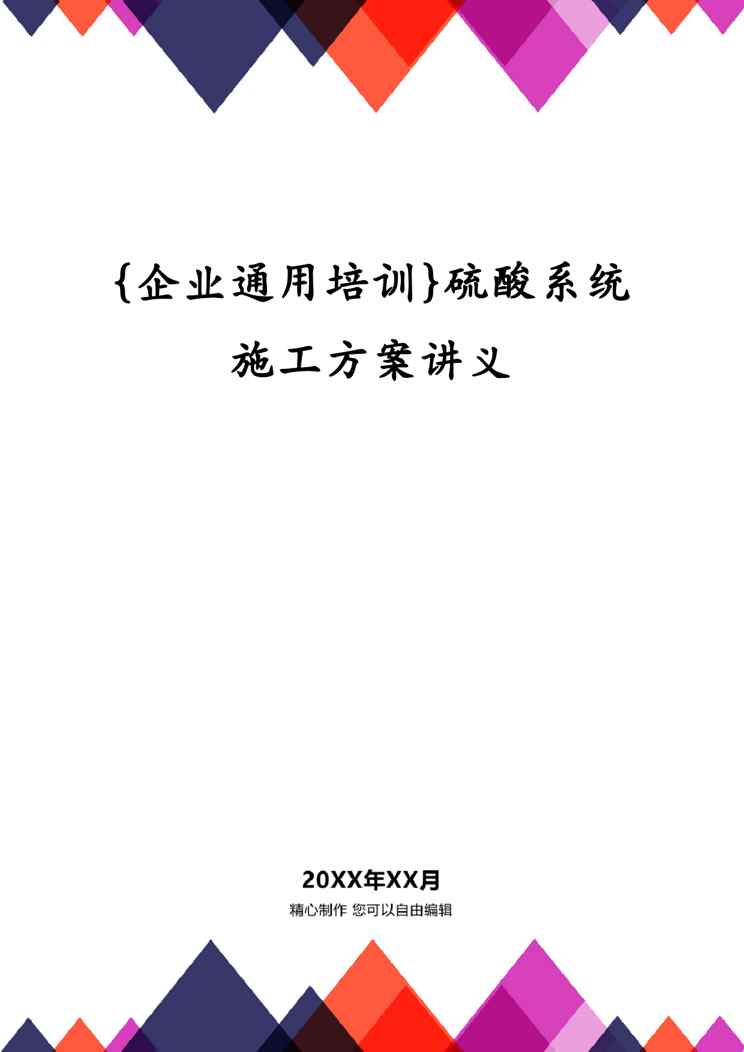 本站正式发布了《{企业通用培训}硫酸系统施工方案讲义》文档,文档详细内容可下载阅读。 声明:本站所有文章,如无特殊说明或标注,均为本站原创发布。任何个人或组织,在未征得本站同意时,禁止复制、盗用、采集、发布本站内容到任何网站、书籍等各类媒体平台。如若本站内容侵犯了原著者的合法权益,可联系我们进行处理。