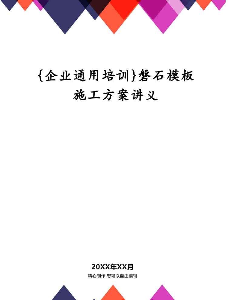 本站正式发布了《{企业通用培训}磐石模板施工方案讲义》文档,文档详细内容可下载阅读。 声明:本站所有文章,如无特殊说明或标注,均为本站原创发布。任何个人或组织,在未征得本站同意时,禁止复制、盗用、采集、发布本站内容到任何网站、书籍等各类媒体平台。如若本站内容侵犯了原著者的合法权益,可联系我们进行处理。