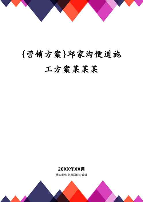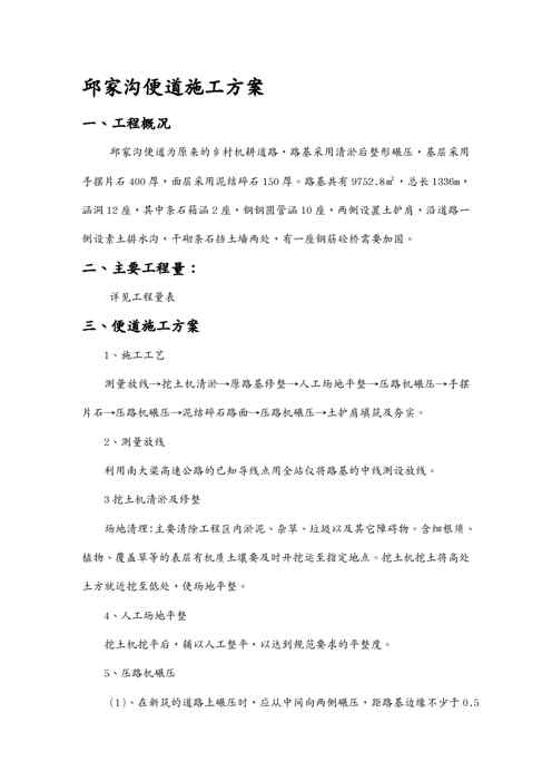 本站正式发布了《{营销方案}邱家沟便道施工方案某某某》文档,文档详细内容可下载阅读。 声明:本站所有文章,如无特殊说明或标注,均为本站原创发布。任何个人或组织,在未征得本站同意时,禁止复制、盗用、采集、发布本站内容到任何网站、书籍等各类媒体平台。如若本站内容侵犯了原著者的合法权益,可联系我们进行处理。