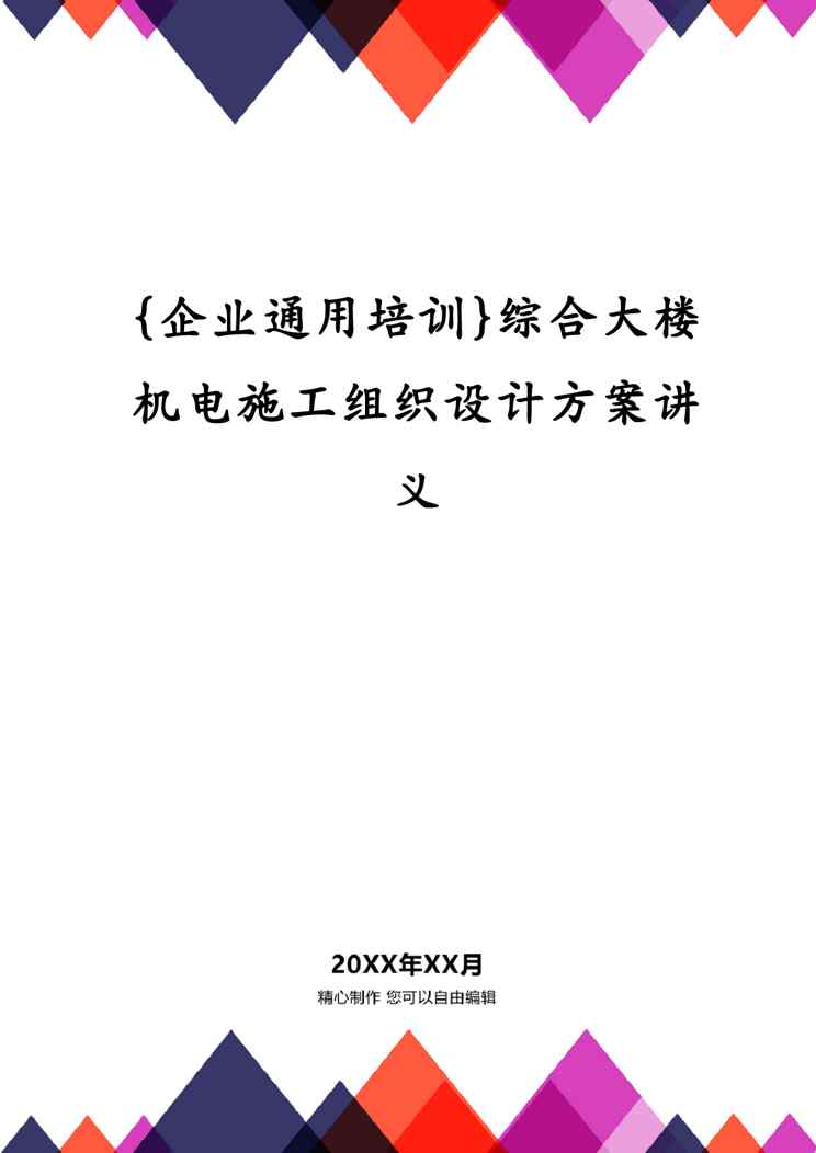 不久前,最新文档《{企业通用培训}综合大楼机电施工组织设计方案讲义》全文正式在本站发布,感兴趣的用户可以下载阅读。 声明:本站所有文章,如无特殊说明或标注,均为本站原创发布。任何个人或组织,在未征得本站同意时,禁止复制、盗用、采集、发布本站内容到任何网站、书籍等各类媒体平台。如若本站内容侵犯了原著者的合法权益,可联系我们进行处理。