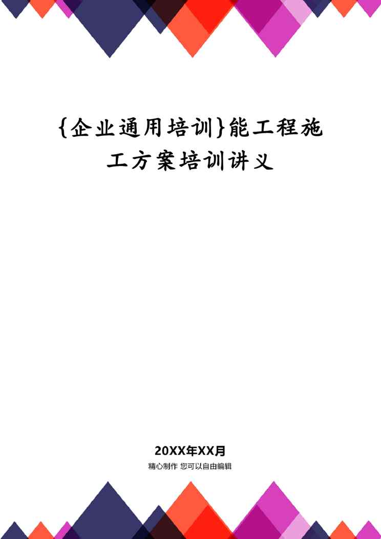 本站正式发布了《{企业通用培训}能工程施工方案培训讲义》文档,文档详细内容可下载阅读。 声明:本站所有文章,如无特殊说明或标注,均为本站原创发布。任何个人或组织,在未征得本站同意时,禁止复制、盗用、采集、发布本站内容到任何网站、书籍等各类媒体平台。如若本站内容侵犯了原著者的合法权益,可联系我们进行处理。