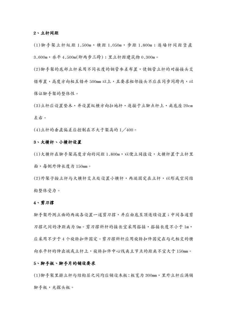 本站资深用户发布了最新的《{企业通用培训}脚手架搭拆施工方案讲义》文档,以下内容为预览,详细内容可下载阅读。 声明:本站所有文章,如无特殊说明或标注,均为本站原创发布。任何个人或组织,在未征得本站同意时,禁止复制、盗用、采集、发布本站内容到任何网站、书籍等各类媒体平台。如若本站内容侵犯了原著者的合法权益,可联系我们进行处理。
