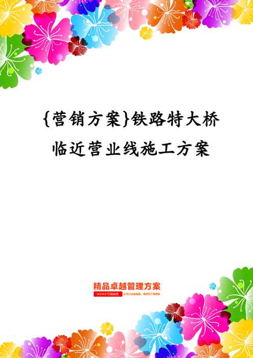 本站资深用户发布了最新的《{营销方案}铁路特大桥临近营业线施工方案》文档,以下内容为预览,详细内容可下载阅读。 声明:本站所有文章,如无特殊说明或标注,均为本站原创发布。任何个人或组织,在未征得本站同意时,禁止复制、盗用、采集、发布本站内容到任何网站、书籍等各类媒体平台。如若本站内容侵犯了原著者的合法权益,可联系我们进行处理。