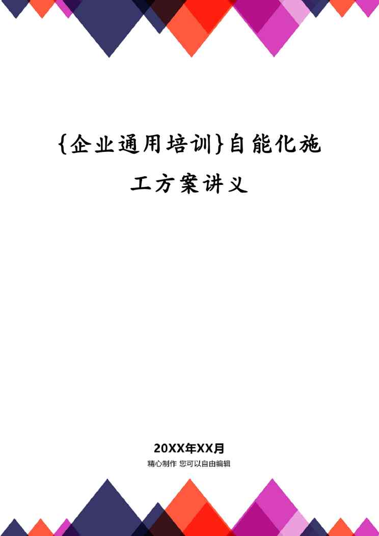 不久前,最新文档《{企业通用培训}自能化施工方案讲义》全文正式在本站发布,感兴趣的用户可以下载阅读。 声明:本站所有文章,如无特殊说明或标注,均为本站原创发布。任何个人或组织,在未征得本站同意时,禁止复制、盗用、采集、发布本站内容到任何网站、书籍等各类媒体平台。如若本站内容侵犯了原著者的合法权益,可联系我们进行处理。