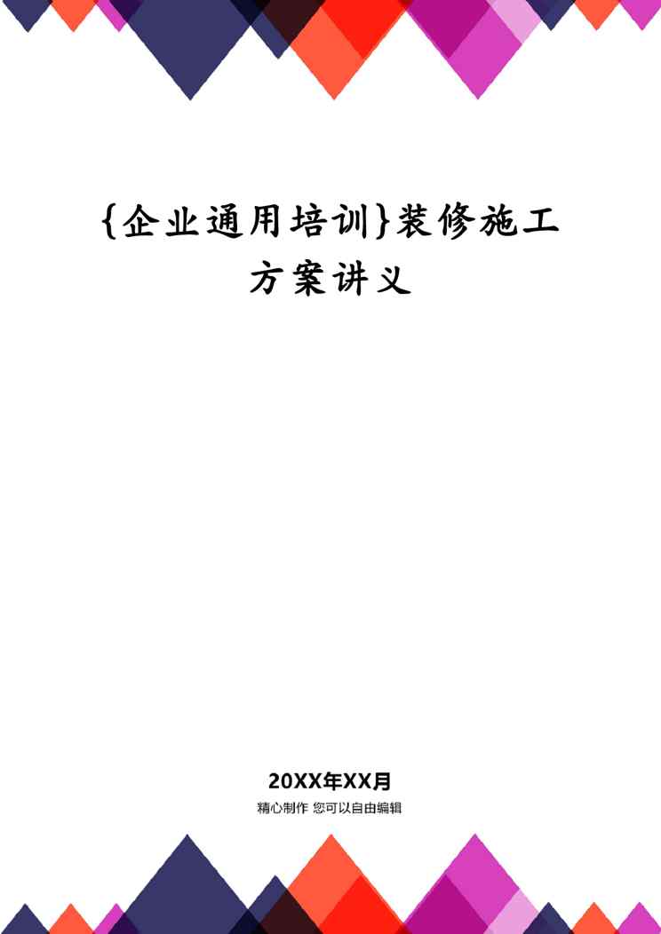 本站资深用户发布了最新的《{企业通用培训}装修施工方案讲义》文档,以下内容为预览,详细内容可下载阅读。 声明:本站所有文章,如无特殊说明或标注,均为本站原创发布。任何个人或组织,在未征得本站同意时,禁止复制、盗用、采集、发布本站内容到任何网站、书籍等各类媒体平台。如若本站内容侵犯了原著者的合法权益,可联系我们进行处理。