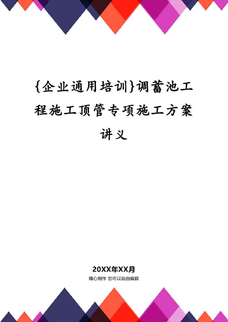 不久前,最新文档《{企业通用培训}调蓄池工程施工顶管专项施工方案讲义》全文正式在本站发布,感兴趣的用户可以下载阅读。 声明:本站所有文章,如无特殊说明或标注,均为本站原创发布。任何个人或组织,在未征得本站同意时,禁止复制、盗用、采集、发布本站内容到任何网站、书籍等各类媒体平台。如若本站内容侵犯了原著者的合法权益,可联系我们进行处理。