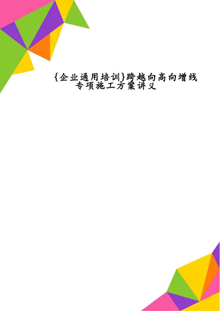 本站资深用户发布了最新的《{企业通用培训}跨越向高向增线专项施工方案讲义1609152357》文档,以下内容为预览,详细内容可下载阅读。